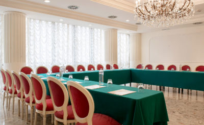"Liberty" meeting roomA modular environment suitable for various kinds of business events, the Congress Hall is a versatile location which can be transformed according to any business needs. Arranged in the shape of a horseshoe for 20 people, in rows for conferences with 30/40 participants or stalls for conferences with up to a maximum of 85/90 seats, the hall is located next to the restaurant and so it is easy to organise coffee breaks or business breakfasts and lunches with personalised menus. |